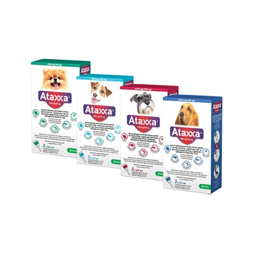 - Honden met een lichaamsgewicht van 4 – 10 kg: Ataxxa 100/500