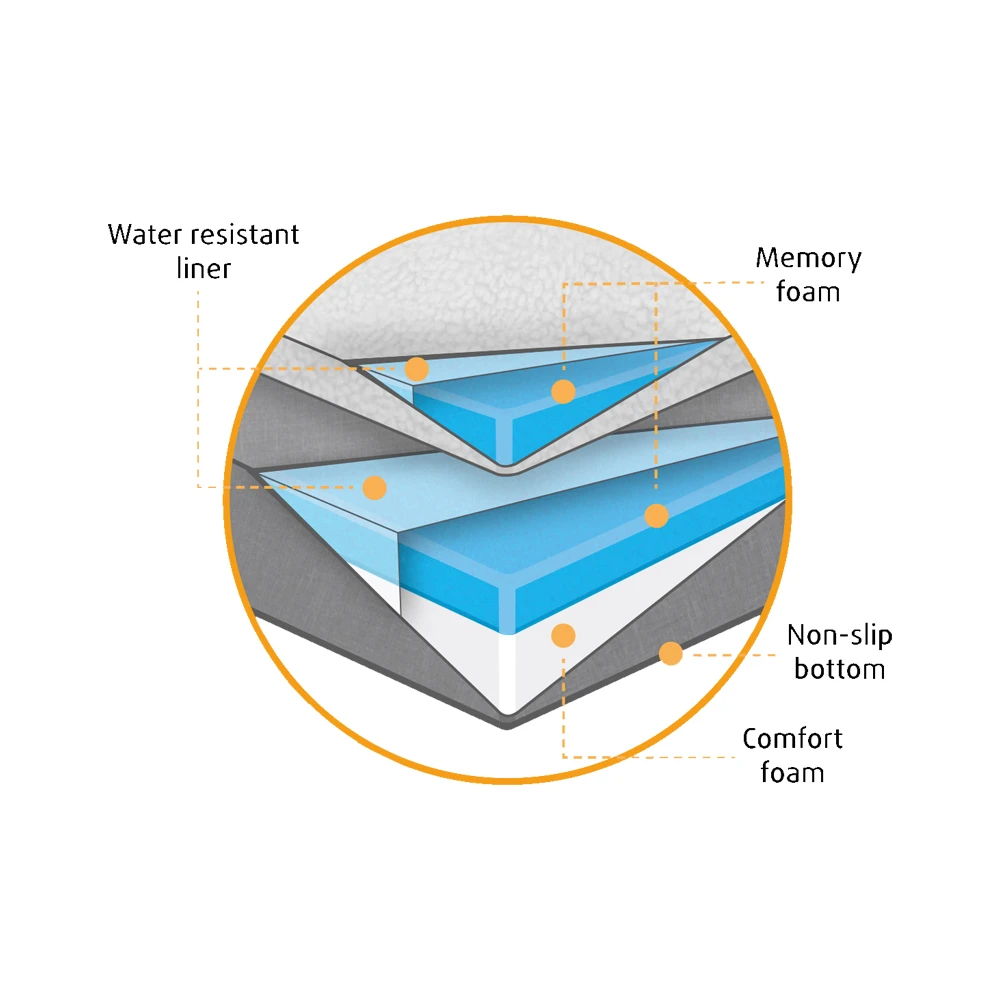 - Gevuld met regulier schuim met daarop een laag memory foam