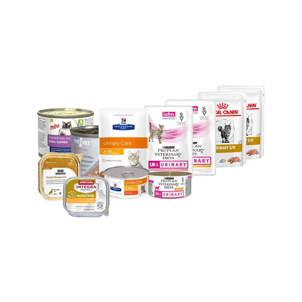 Heeft uw kieskeurige kat last van blaasgruis of komt de blaasgruis snel weer terug? Dan is dit proefpakket de ideale oplossing. Met behulp van dit pakket vindt u zeker de ideale voeding voor uw kat. Het bevat wel 11 verschillende natvoedingen van verschillende merken zoals Royal Canin, Hill’s, Purina, TROVET, Animonda, Prins, Sanimed en Specific. Deze natvoedingen lossen struvietstenen op en/of verminderen herhaalde struvietsteen- en oxalaatsteenvorming.