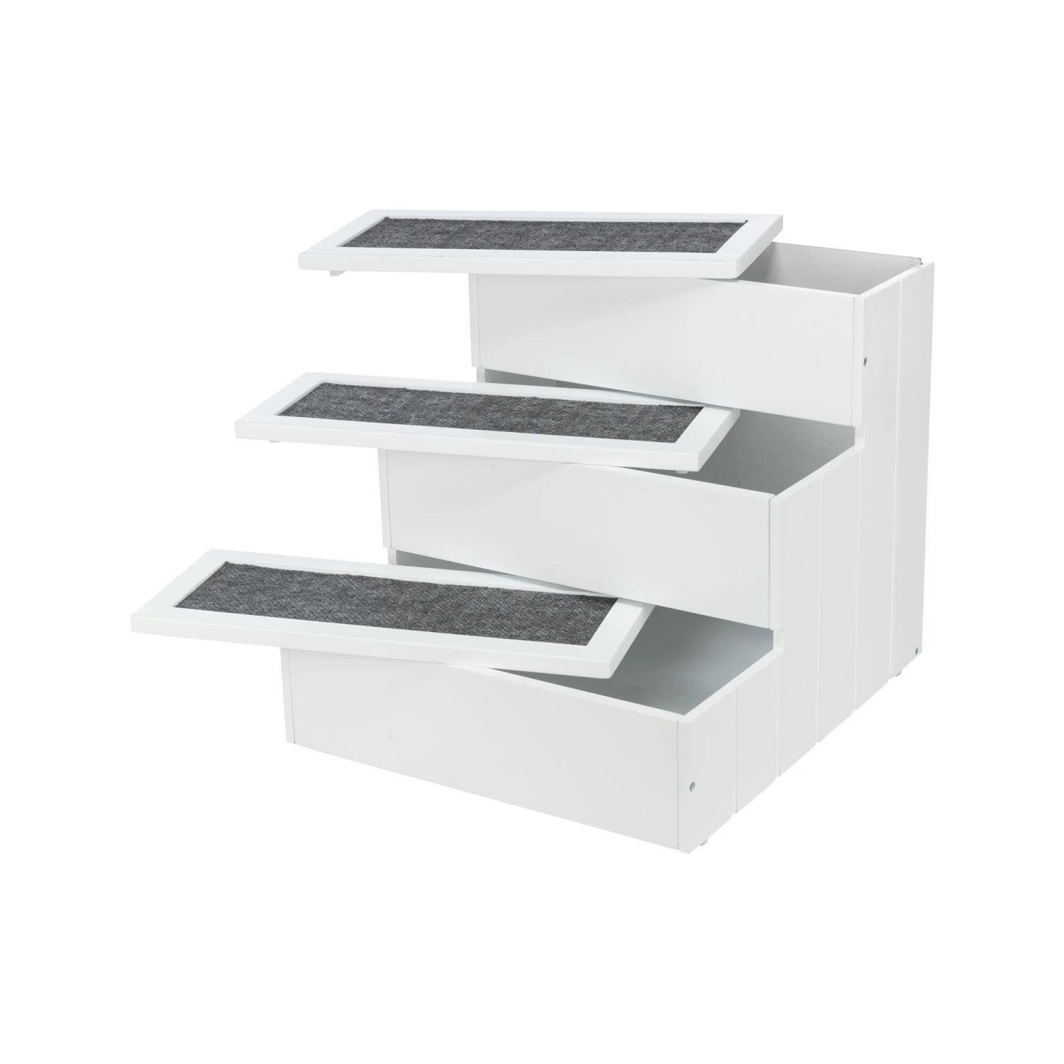 Als u uw huisdier een handje wilt helpen met op het bed of de bank te klimmen kunt u deze huisdiertrap van Trixie gebruiken. De trap is ook heel ondersteunend voor dieren met gewrichtsproblemen omdat ze niet meer hoeven te springen. De trap is bekleed met tapijt voor betere grip. De trap heeft afneembare treden, zodat je het ook als opbergruimte kunt gebruiken.