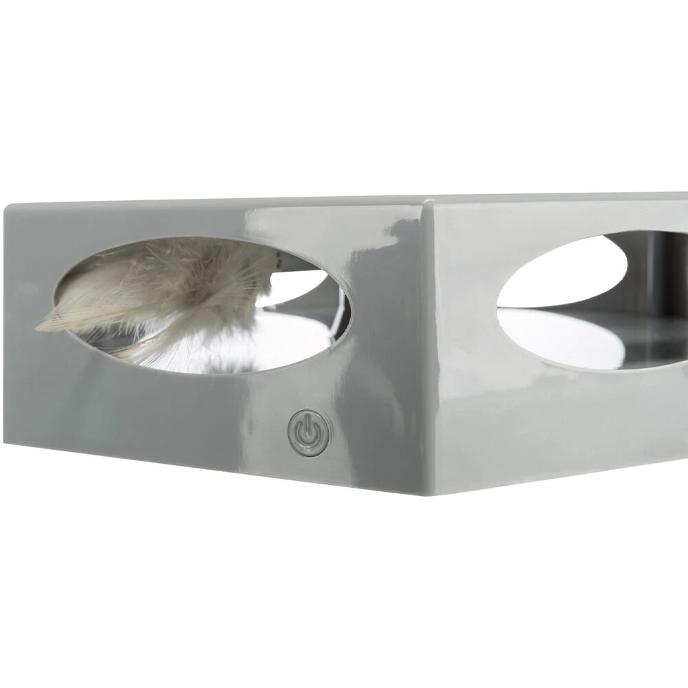 Is uw kat een echte jager? Daag hem of haar dan uit met de Turning Feather van Trixie. Dit leuke kattenspeelgoed van kunststof heeft een veer die heen en weer zwiept. Doordat hij stopt en verandert van richting, is het extra leuk om op te jagen! Dit speelgoed houdt niet alleen je kat actief, maar stimuleert ook nog eens het jachtinstinct. Het spelen met de Turning Feather wordt nog leuker als deze wordt gevuld met beloningssnoepjes.